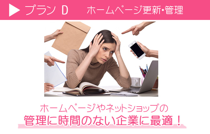 自社のホームページの更新管理とネット販売の管理作業、発送管理などWebの管理を全て代行するプランです、